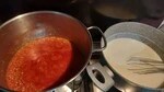 - Per prima cosa, occorre preparare il ragù. Nella mia ricetta, ho voluto realizzare un ragù molto semplice per esaltare il gusto delle carni. Quindi in una pentola versate delle olio extravergine di oliva, scaldatelo e aggiungete poi alcuni spicchi d'aglio per insaporire. Una volta che l'aglio sarà diventato dorato, potete rimuoverlo e versare il macinato. Fate rosolare a fuoco dolce sino a completa cottura. Successivamente, aggiungete la passata di pomodoro e fate cuocere a fuoco lento per almeno 20 - 30 minuti, aggiustando di sale. Se il ragù si addensa troppo velocemente riducete ulteriormente la fiamma e aggiungete dell'acqua. Il ragù deve cuocere bene e a lungo, per perdere l'acidità e caramellare gli zuccheri del pomodoro.